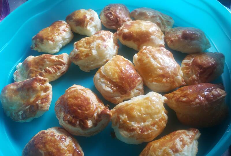 Composition : pâte feuilletée garnie avec du chèvre frais local, épices